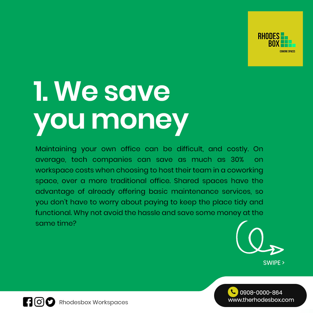 - Access to conference room equipped for video conferencing and projector use at a discount rate.